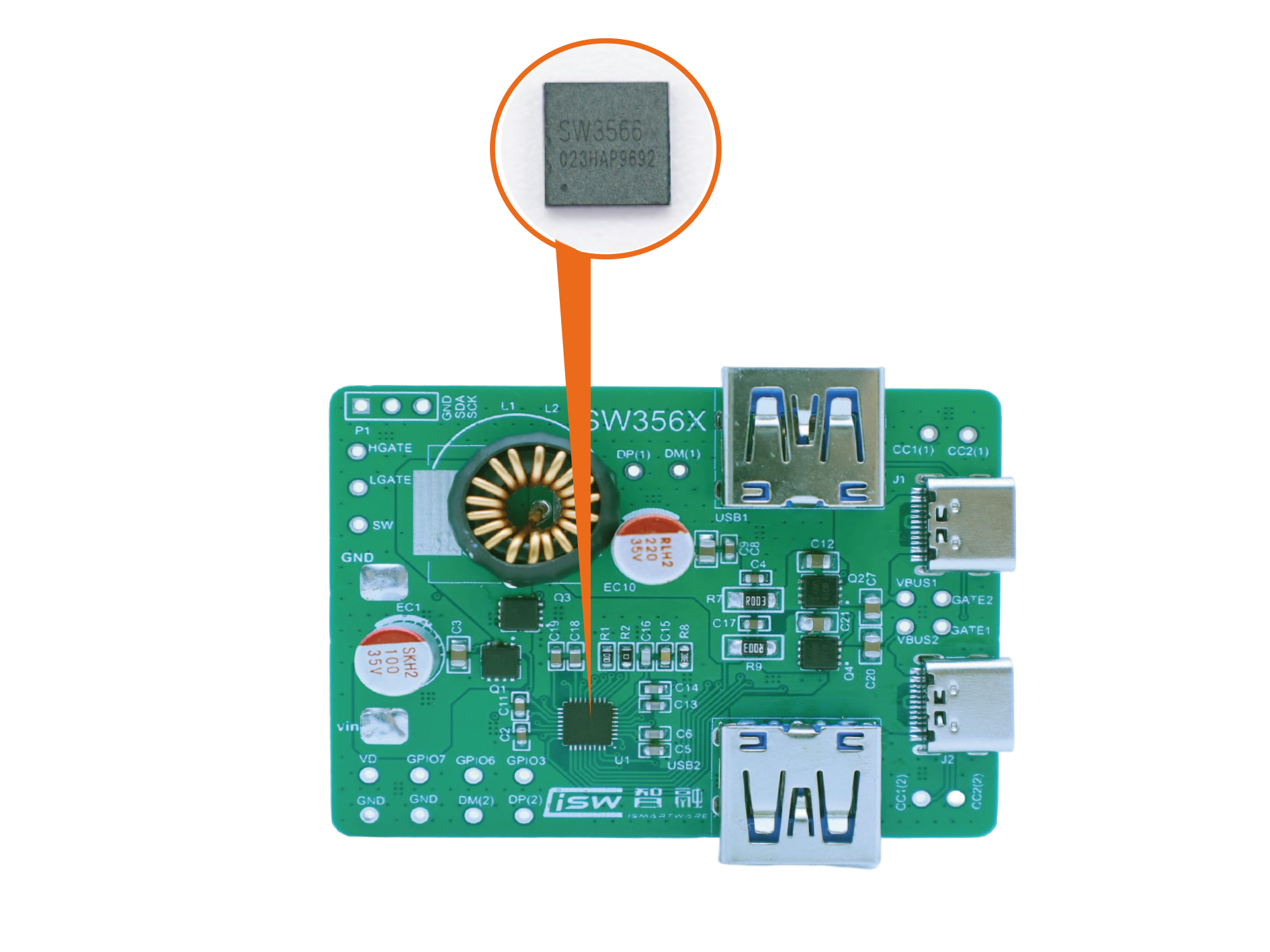 SW3566 是一款高集成度的多快充协议双口充电 SOC芯片,支持 C+C/A+C/A+A口任意口快充输出,支持双口独立限流。其集成了 7A 高效率同步降压变换器,支持 PD3.1/QC/SCP/UFCS 等多种快充协议,最大支持 140w输出功率,集成CC/CV 模式、双口管理逻辑以及母线电压检测,并且内置 Cortex-M0CPU 满足快充协议定制需求。外围只需少量的器件,即可组成完整的高性能多快充协议双口充电解決方案。