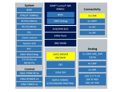 - 内核:ARM® Cortex®-M0,最高工作频率 90MHz