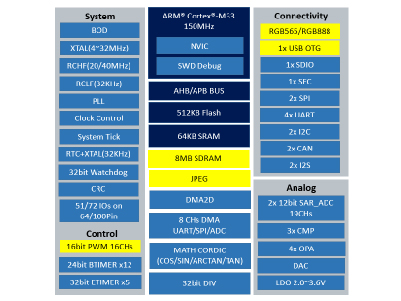 - CAN*1, I2C*1, SPI*2, UART*2, I8080*1
