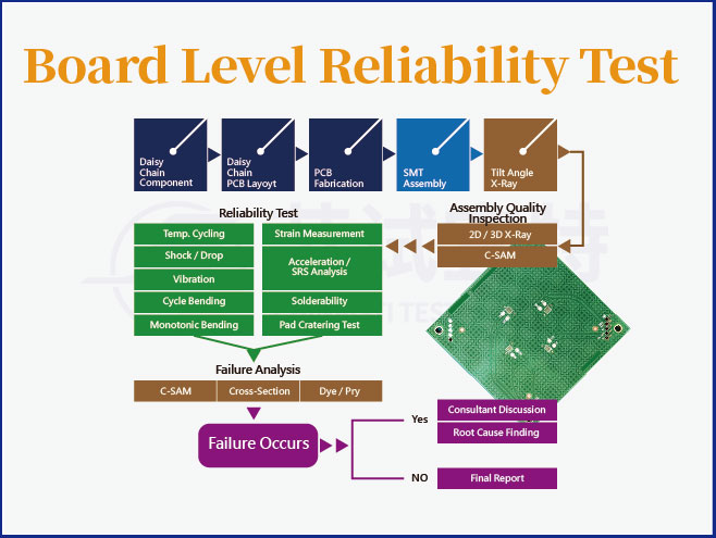 为了满足车用【板阶(Board Level)】可靠度需求,苏试宜特提供BLR试验规划/撰写,PCB布局/制作、SMT组装、试验执行与焊点数据监控/撷取等相关能力,并结合车用芯片与车用系统,提供客户完整的可靠性验证环境。