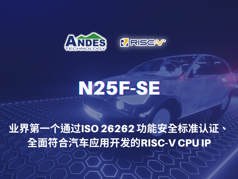 业界第一个通过ISO 26262 功能安全标准认证、全面符合汽车应用开发的RISC-V CPU IP。N25F-SE 是一个32位五级流水线RISC-V CPU核心,支持标准的 IMACFD 扩展指令集,且具有丰富的可配置选项。N25F-SE 及其安全套件共同提供一个有效、高性能且灵活的车用解决方案,並协助客户加速通过车用验证。