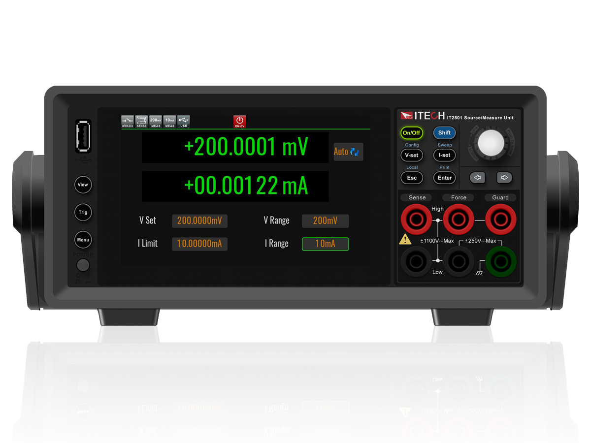 IT2800系列是外观紧凑、经济高效的台式源测量单元,简称源表或SMU。它集6种设备功能于一体,综合了四象限电压源,电流源,6.5位数字万用表、脉冲发生器、电池模拟器以及电子负载功能,是半导体功率器件IV特性测试的理想选择。全系列覆盖了10fA到10A的电流范围以及100nV到1000V的电压范围。除了直流工作模式之外,IT2800系列SMU还能够进行脉冲测量,以防止器件自身发热导致测量结果出现误差。5寸触摸显示屏,使源表具有出色的图形用户界面以及各种显示模式,帮助工程师显著提高测试效率。广泛应用于分立半导体器件、功率芯片、无源器件、光电器件、微功耗量测以及材料研究等领域。