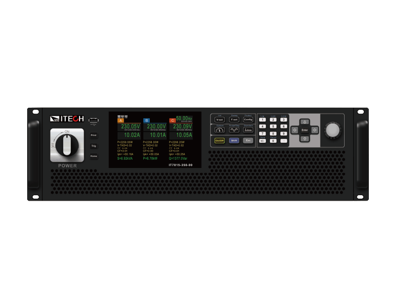 IT7800系列是集人性化编程功能,全新触控界面以及丰富的数据波形分析能力于一体的全新一代大功率可编程交流电源/直流电源。采用碳化硅(SiC)技术,高功率密度设计,3U体积内功率可达15kVA,通过主从并机,还可以提供高达960kVA的大容量交直流输出,为满足日益增长的大功率应用提供紧凑高效的解决方案。