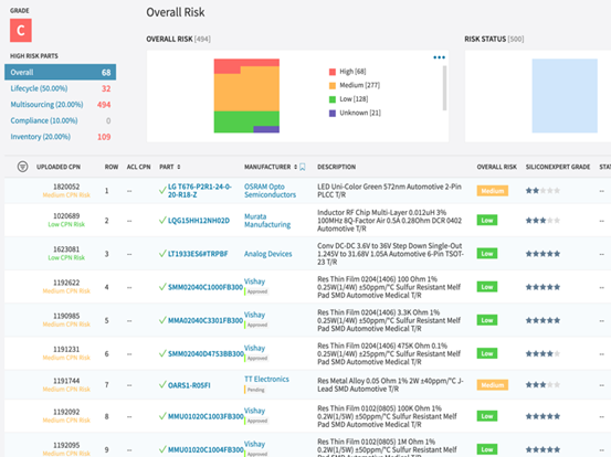 BOM Manager 物料清单管理器的功能包含物料清单风险评级、自动推荐替代物料、物料变更通知预警、生命周期报告、合规报告、SVHC 报告、多渠道采购报告、多源采购选项、库存报告等;系统对高风险的物料推荐了替代物料,能改善物料清单的运行状况。用户在同一个视图中查看多渠道信息来提高生产力,进而消除了对多个数据表格的需求。