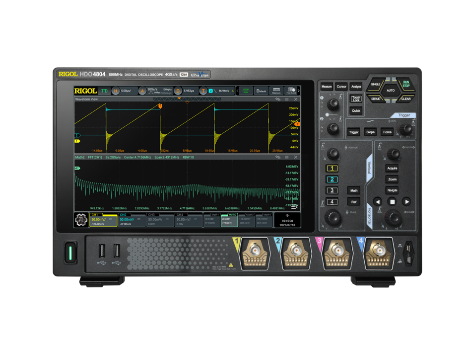 RIGOL全新HDO4000系列高分辨率数字示波器,搭载了RIGOL自主设计研发的新一代数字示波器专用芯片组“半人马座”,最大模拟带宽达800MHz,最高实时采样率4GSa/s,最大存储深度500Mpts。HDO4000具有12bit的垂直分辨率,业内领先的100uV超低垂直灵敏度以及超低本底噪声,充分满足如电源纹波测试,电源轨测试以及低功耗测试等微小信号的测试需求。
