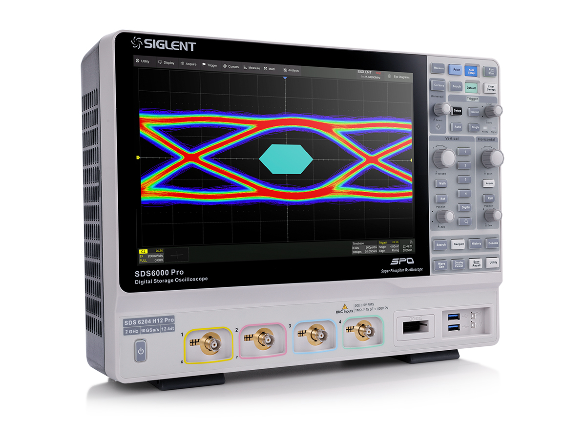 鼎阳SDS6000 Pro是全国第一款具有2 GHz和12-bit高分辨率的数字示波器,它具有10 GSa/s的采样率,最高 500 Mpts的存储深度。