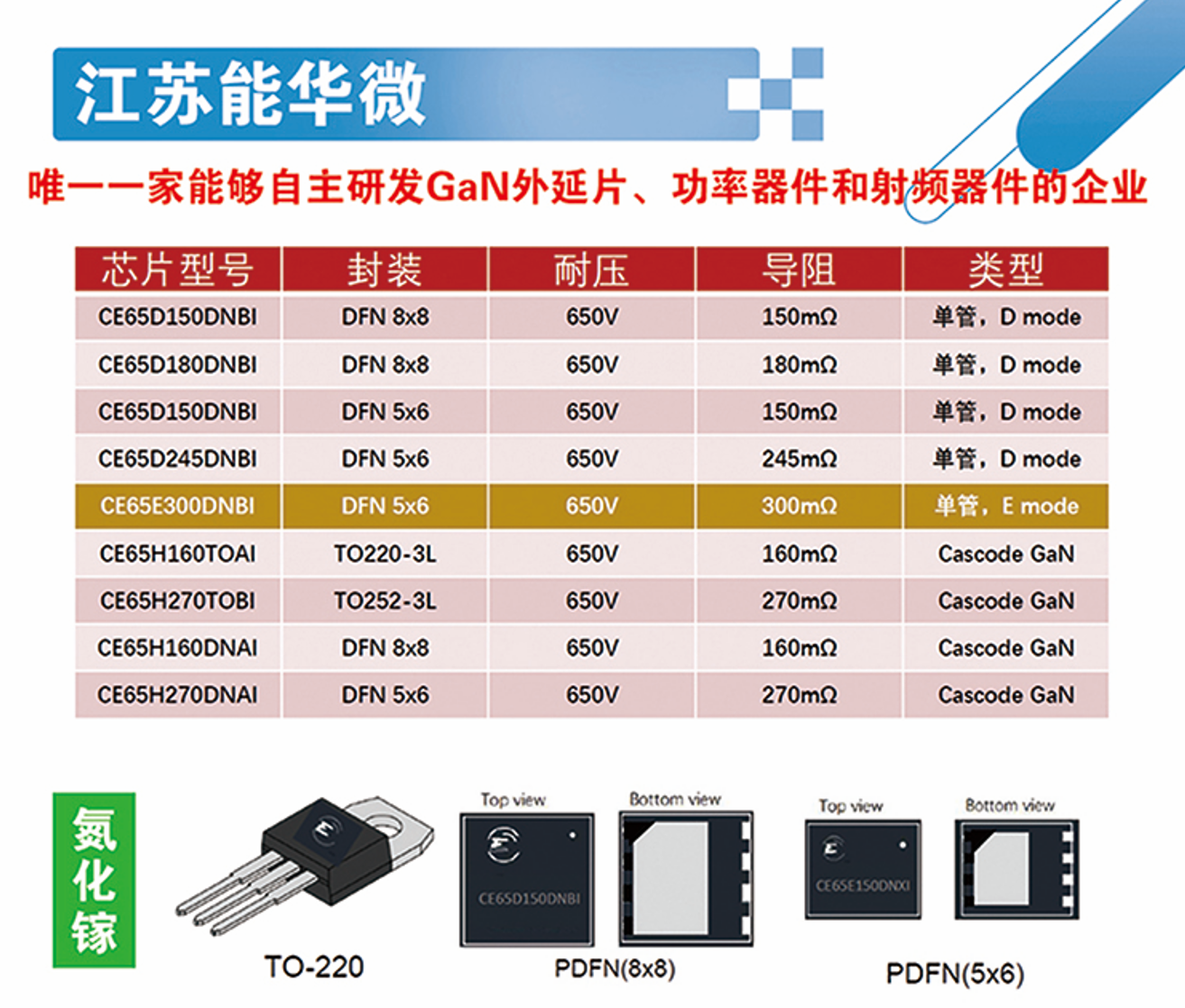 能华微的氮化镓MOS,单管,E mode,封装DFN 5*6 ,耐压650V