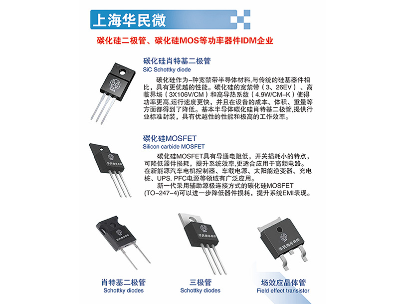华民微的碳化硅肖特基二极管、碳化硅MOS等功率器件 ,碳化硅肖特基二极管提供行业标准封装,具有优越的性能和极高的工作效率。碳化硅MOS可以进一步降低器件损耗,提高系统EMI表现。